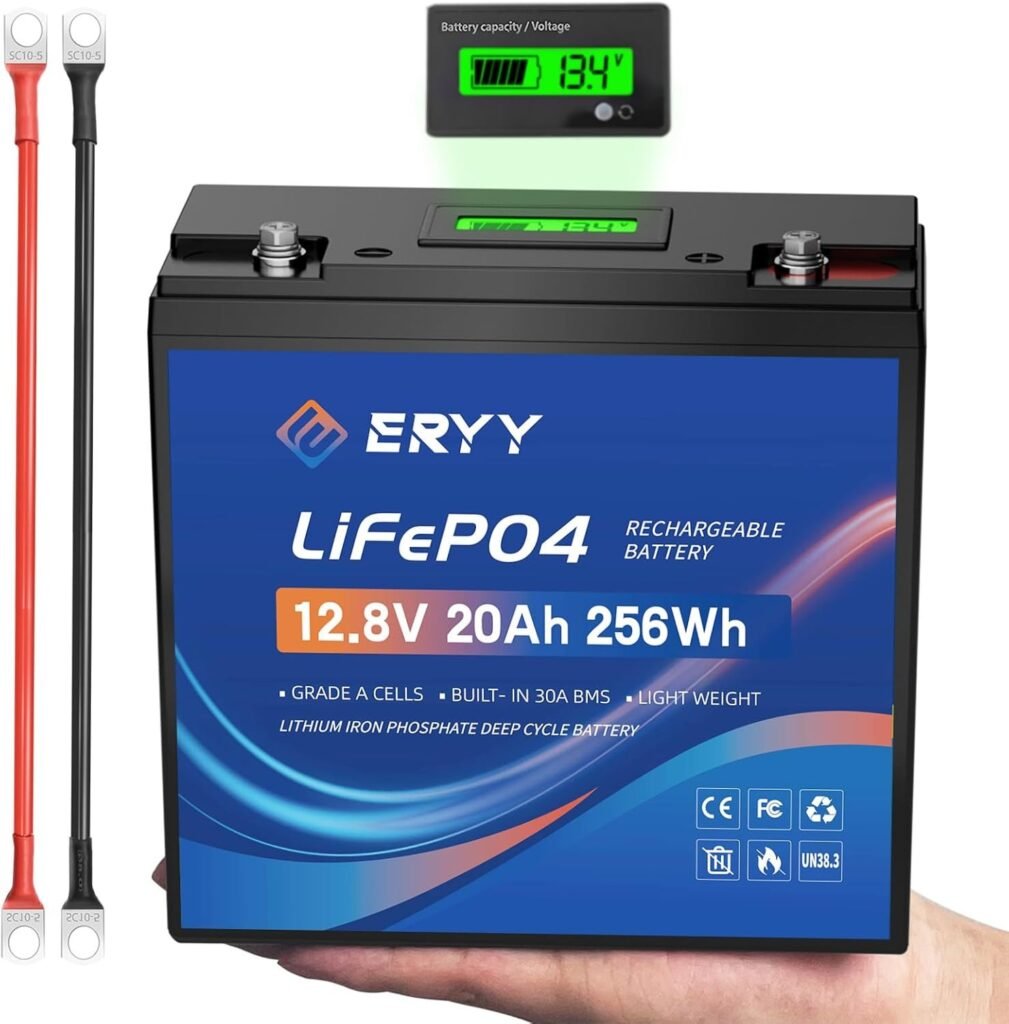 ERYY 12V 20Ah20Ah, 20A BMS, LCD Voltmeter, 4000+ cyclesLong-duration, high-cycle life off-grid power4.5/5