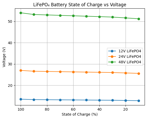 LiFePO4 Voltage Chart: 12V, 24V, and 48V State of Charge